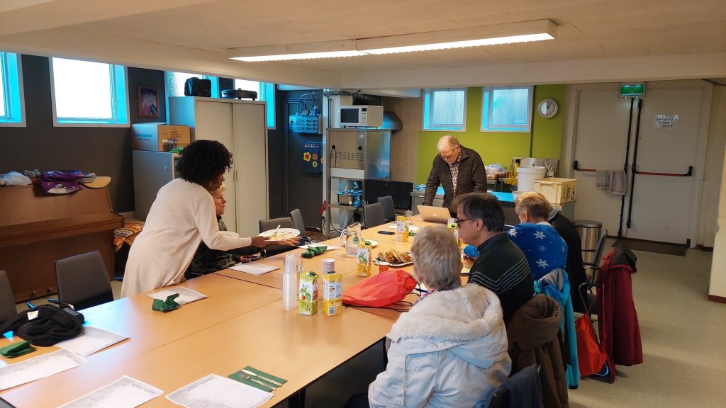 Eerst God aanbidden met live begeleiding en gebed toen uitleg vanuit de Bijbel over schat zoeken en uitleg hoe mensen tot Jezus te leiden via het Script en dit zelf geoefend. Toen een workshop: Gods stem verstaan. Daarna een uitgebreide warme lunch en toen hebben we de schatkaart ingevuld en zijn we in groepjes van 3 verdeeld. We hebben ons toen warm aangekleed en we hebben met de groep gebeden en Arie deed impartatie met handoplegging bij elk persoon. Toen de straat op!!! Ieder met zijn schatkaart zijn we op zoek gegaan. Onderweg mooie dingen meegemaakt!!! 2 Poolse mannen gaven hun hart aan Jezus !!! Zo bijzonder! Dit op afgesproken tijdstip van terug zijn weer besproken. Daarna heeft Arie de dag afgesloten met gezamenlijk gebed en ieder apart nog gezegend. Wat werkt God wonderlijk in en door ieder die tijd beschikbaar stelt voor de HEERE. Veel geleerd veel zegen mogen ervaren, heerlijk dat God mensen wil gebruiken om andere mensen het goede nieuws te vertellen. Volgende keer ga ik graag weer mee schat zoeken